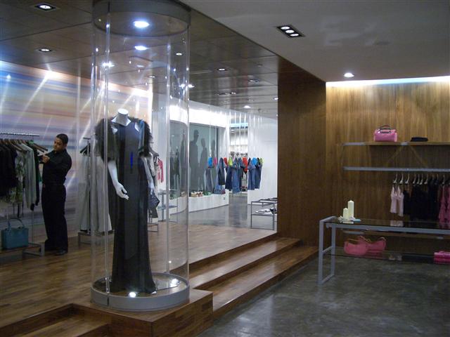 Fashionable, elegant, elite are only a few elements which has been considered to create an eye-catching design to portray what really is the company's mission. Lights and dimming harmonizes with refined marble finishes, clear glass panels and finest stainless steel materials producing a welcoming and cozy ambience. Plain shades has been utilized for walls so as to emphasize the company's deluxe and exclusive products.