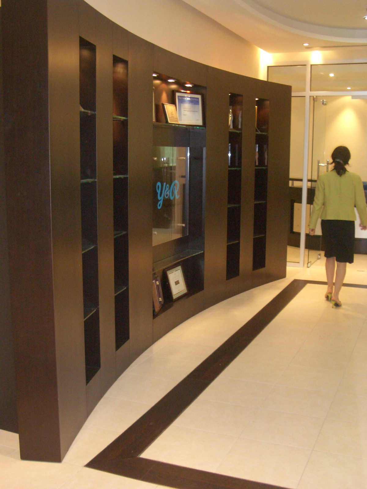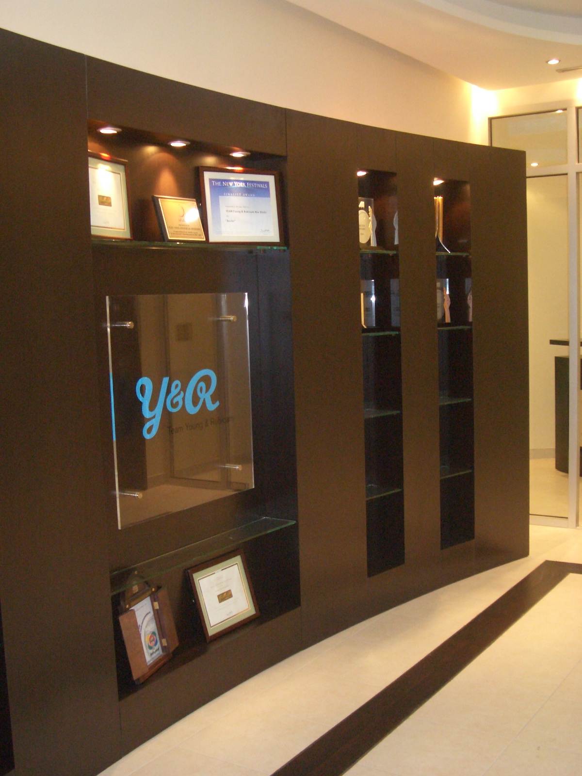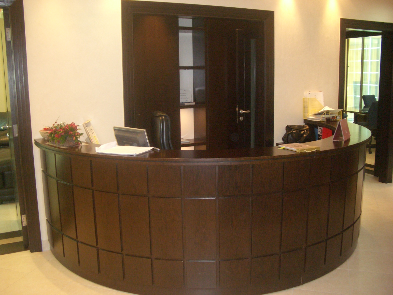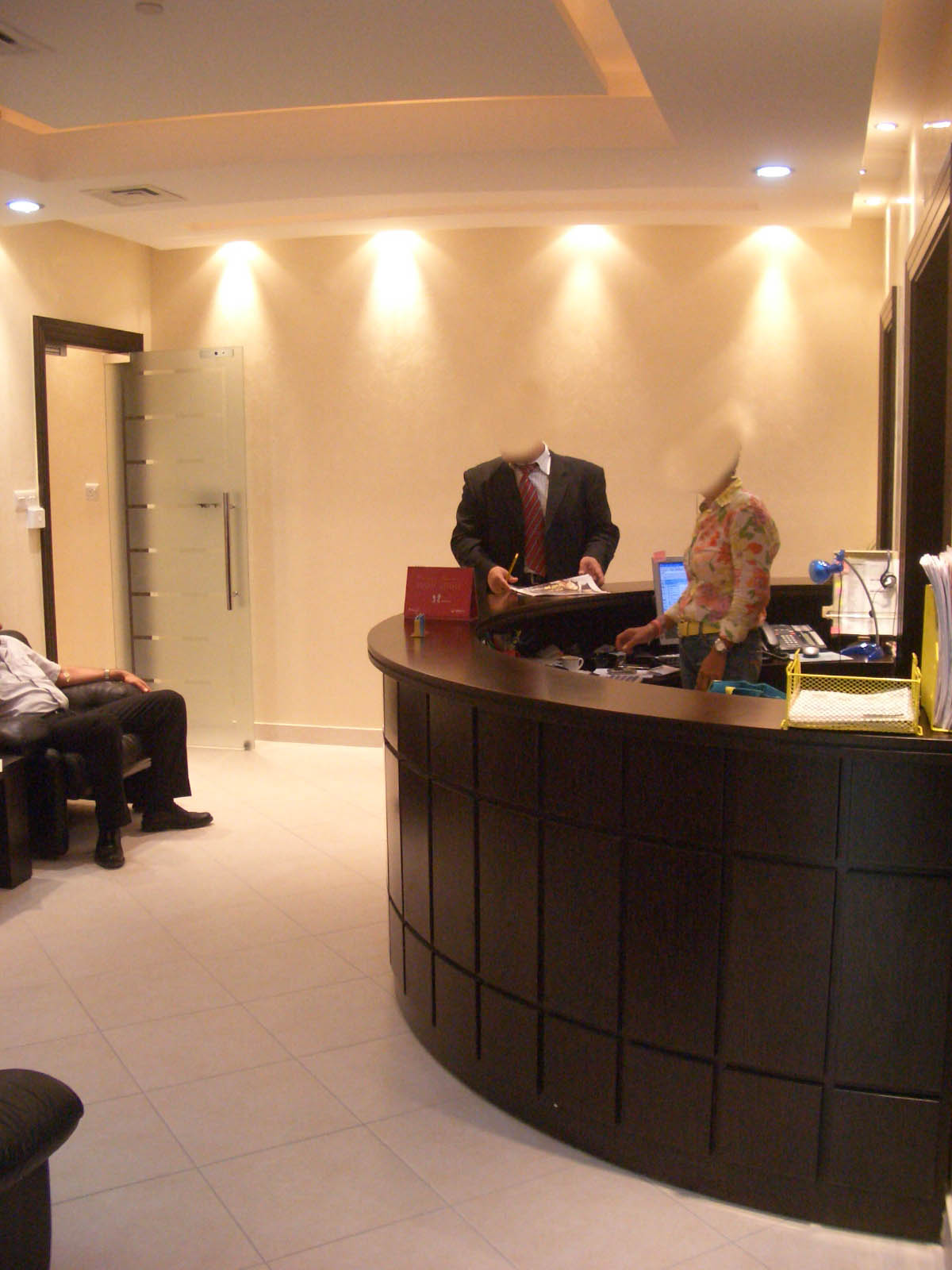 A prestige advertising office situated in the 3rd floor of AMF Building at Abu Dhabi, which boasts of complete office departments and facilities from its inviting and spacious reception and waiting area in circular layout, numerous yet well thought-out glass and wooden partitioned workstations, a number of outstanding managers and director's office with its separate waiting area and an elegant conference room. Its interiors are defined with simple nevertheless elegant flooring layout, glass and intricate wooden doors and abundant lighting so as to illuminates the entire office in addition to various custom-made furniture.