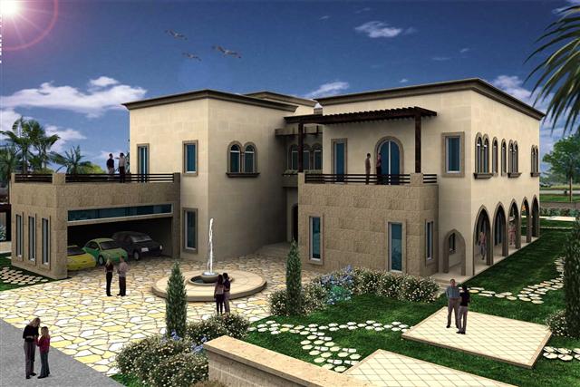 Towering fountain that fascinates the lookers complements with the landscape rise-up plants. Constructively designed covered garage that serves balcony as well, overlooking the entire neighborhood. Surrounded by arcs providing openness differing to its undersized windows characterizing the privacy and exclusivity of the entire villa. Externally simple yet internally well-designed, with its rich and elegant features and finishes such as sophisticated bar and salon, comprises of 4 spacious bedrooms and the master bedroom each with a dressing room. Adding up to stylish interior structure is the curvy bridge with a garden view running from the family room to master bedroom. The entire villa reflects Arabian elite living still providing contemporary and a tropical paradise home.