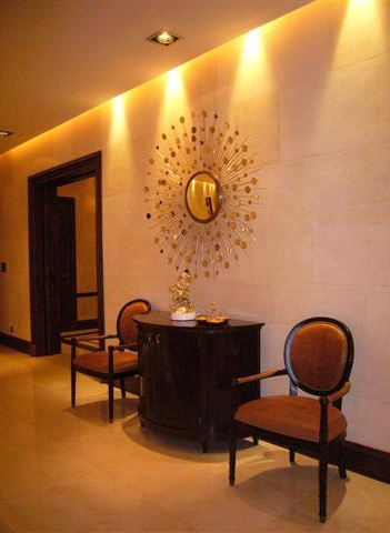 Various features of the villa are double height entrance, huge patio, round skylight, classy, elegant, distinctive space with a special architectural features combining the modern house with the traditional patio concept with great harmony that bestows unique ambience. Celebrated for its huge yet comfortable reception whereas fiber optic lights are fixed in view above that creates a celestial outlook that makes you feel relax and in heaven. Distinctive with its marble design at the entrance as well - The Star of Bur Dubai.